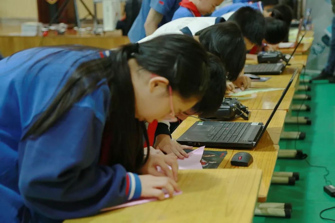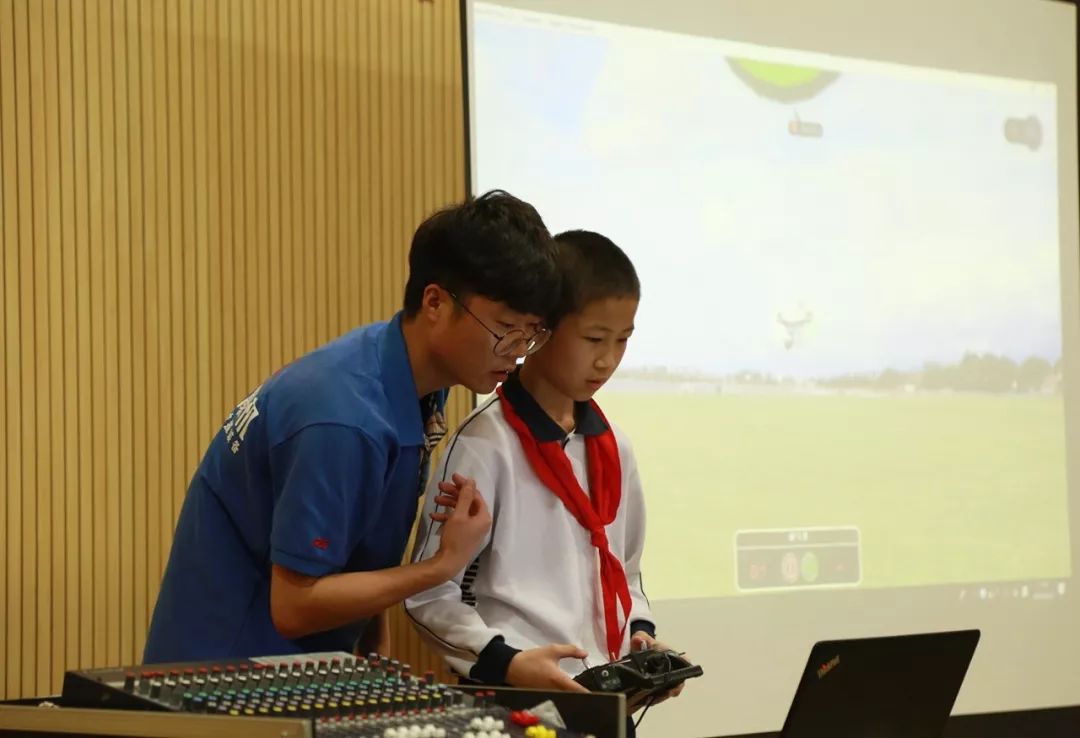 在模拟飞行体验区,学生们可以在电脑上零距离体验无人机的模拟飞行。在专业飞手的辅助下,“小飞手”们手持遥控器,眼睛紧紧盯着电脑屏幕中的无人机,十分认真。