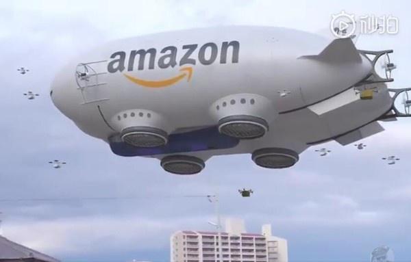 空中航母?亚马逊飞艇快递曝光 里面全是无人机!
