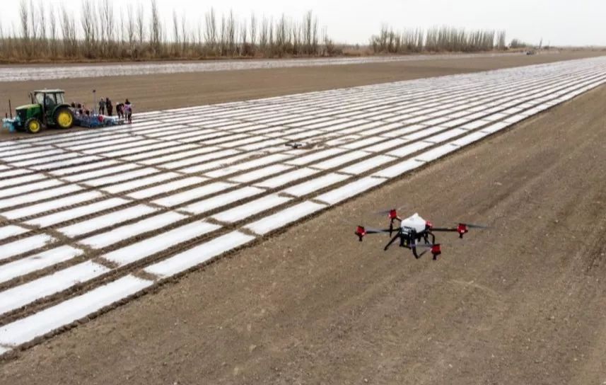 4月1日,新疆巴州尉犁县的一片棉田里,极飞植保无人机与当地整地机、智能导航播种机等智慧农机进行联合春播作业,实现自动化、智能化春耕生产。春播后,同一地块的后期种耕、打药、机采等环节均可以实现数据共享,通过对数据的分析,还能全面、实时掌握农机使用和农业生产情况,便于机具的作业、管理与维护。