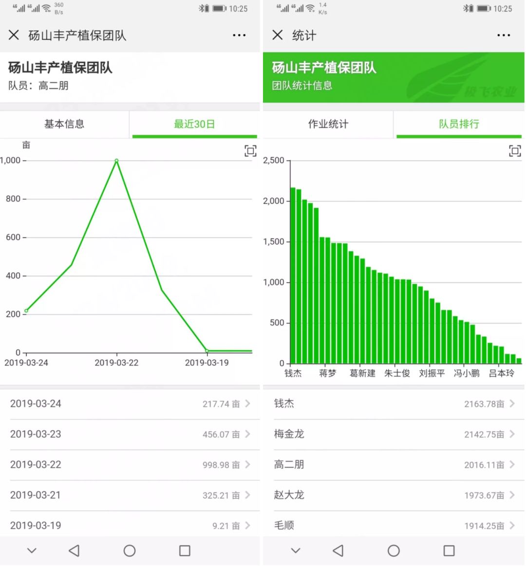 3月23日,安徽砀山开展了19 万亩的小麦统防统治作业,丰产农机合作社投入100 架植保无人机(其中56架极飞植保机)开展飞防工作,并通过极飞的数字化植保管理系统,实时监管作业面积、质量及效率等统防统治进展情况,保证飞手按质按量完成作业,为防治任务的高效开展及作物丰收提供强大、放心的保障。