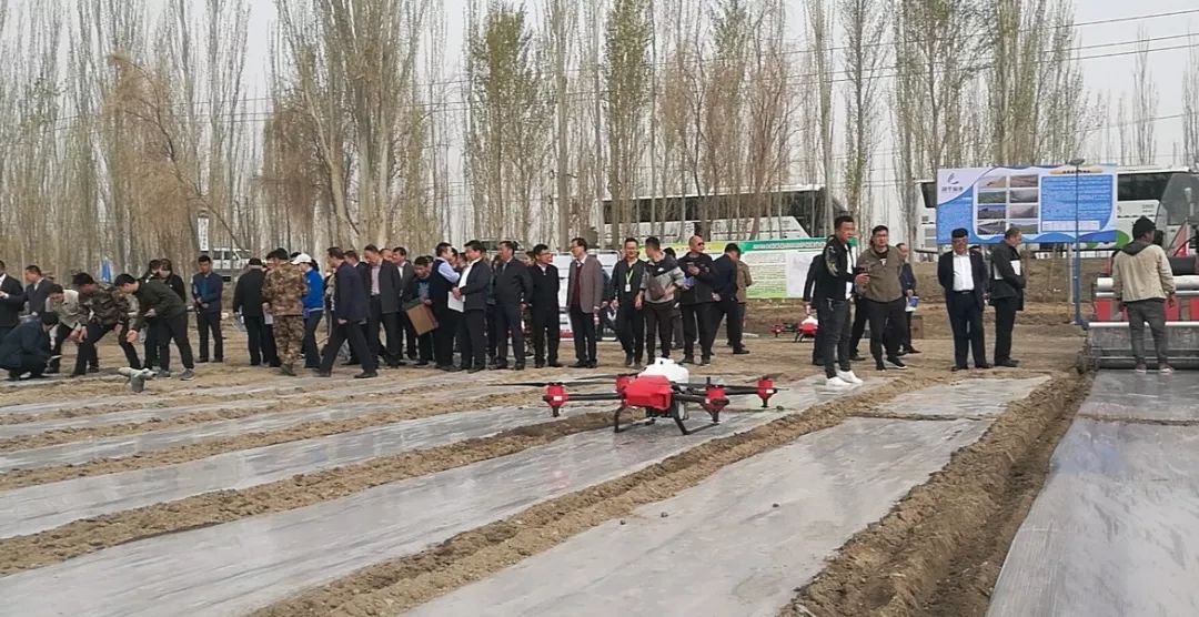4月3日下午,第二师铁门关市棉花优质高效栽培技术示范田观摩会顺利举行,兵团农业技术推广总站站长王林、第二师农业推广站站长薛新福出席活动。极飞植保无人机作为优质、高效且经济的绿色农业科技,受邀参加观摩会进行飞防演练。