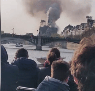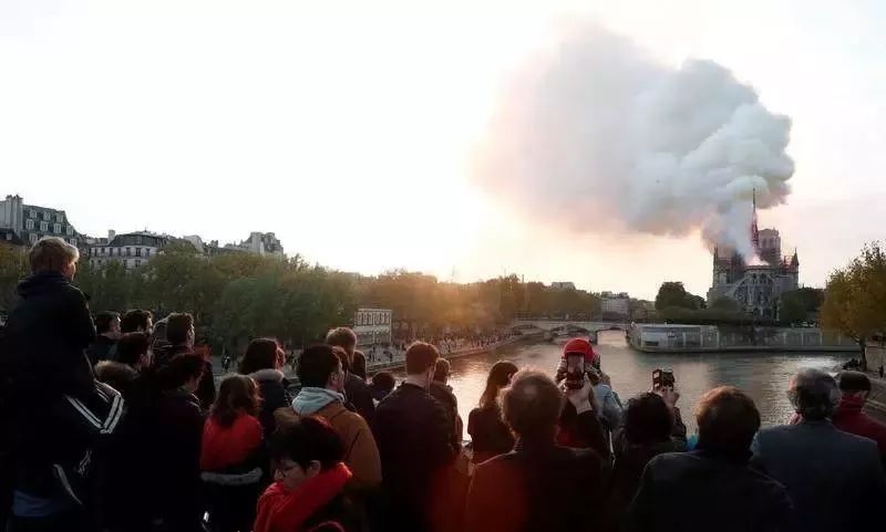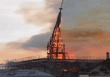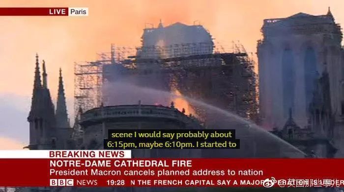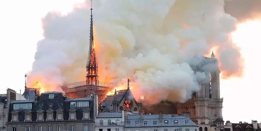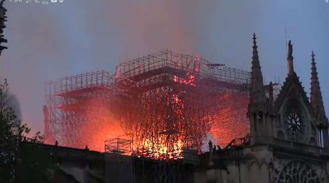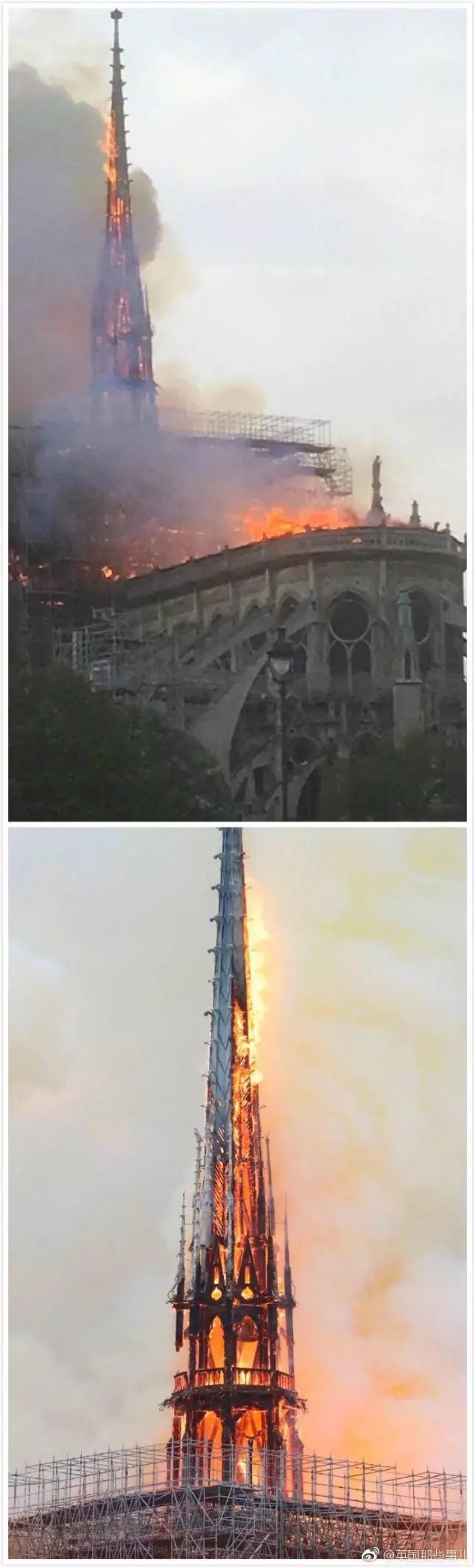 视频记录,大教堂尖顶遭烧塌坠落瞬间