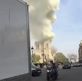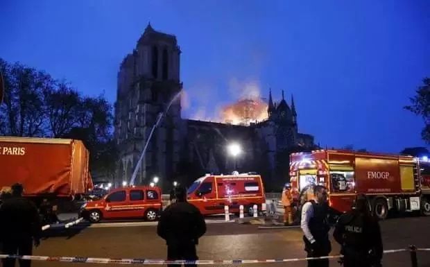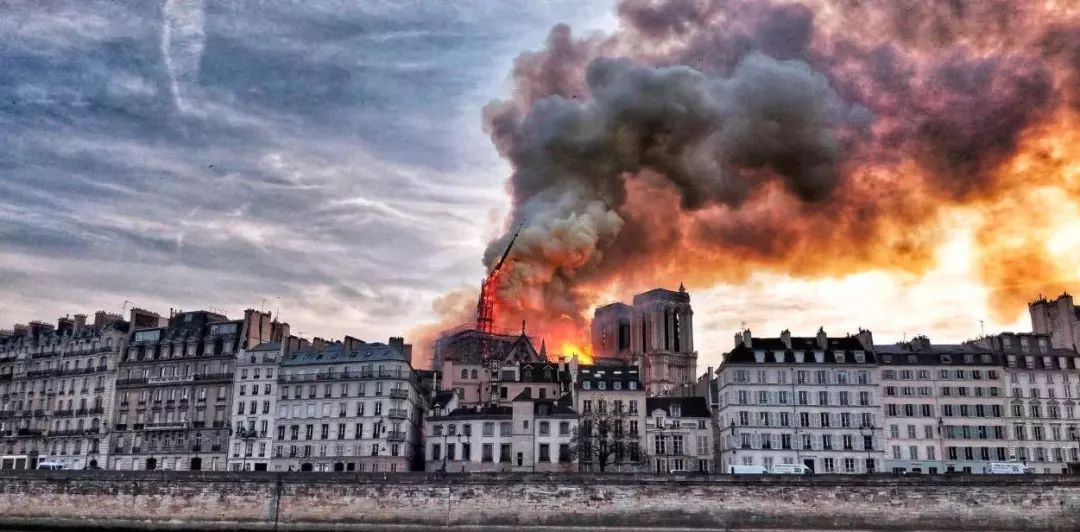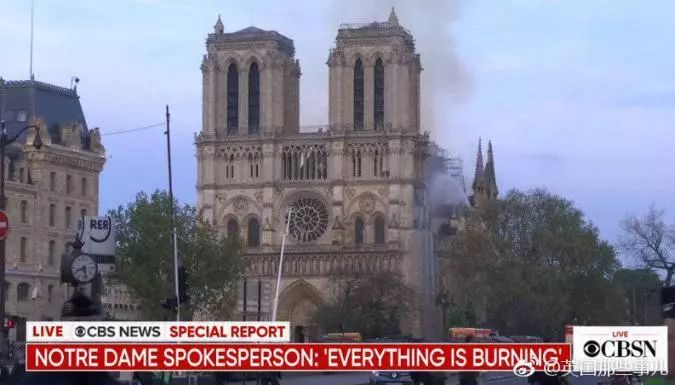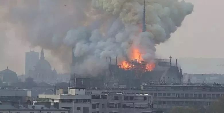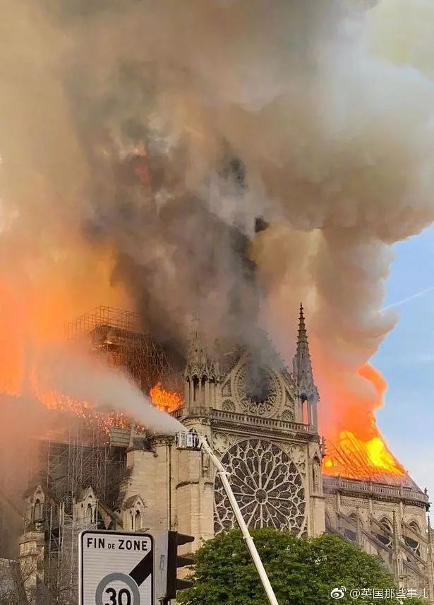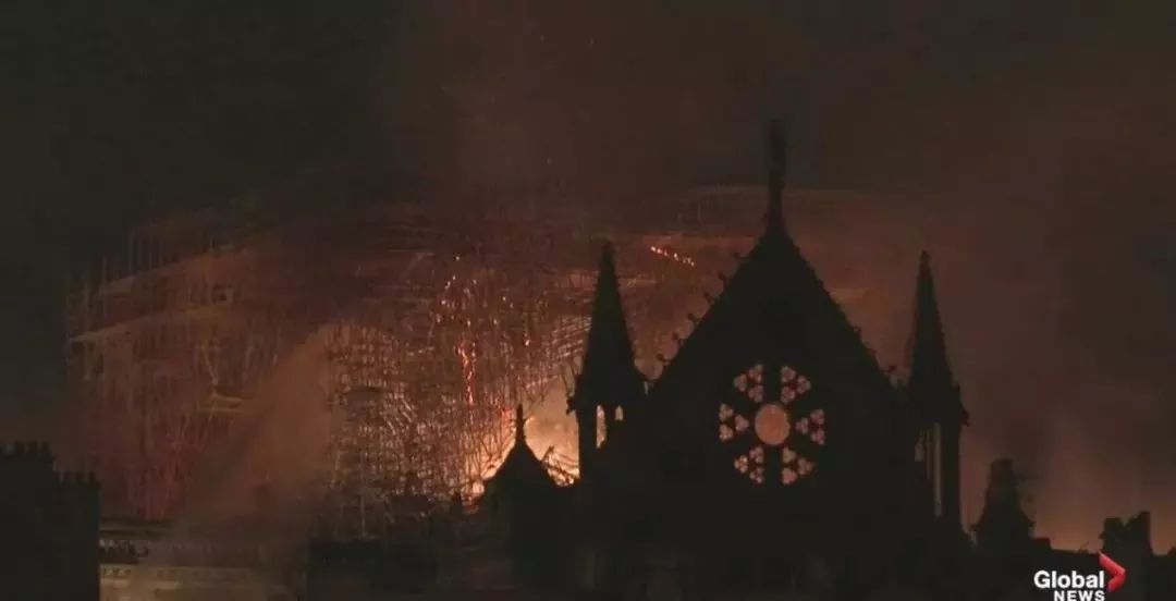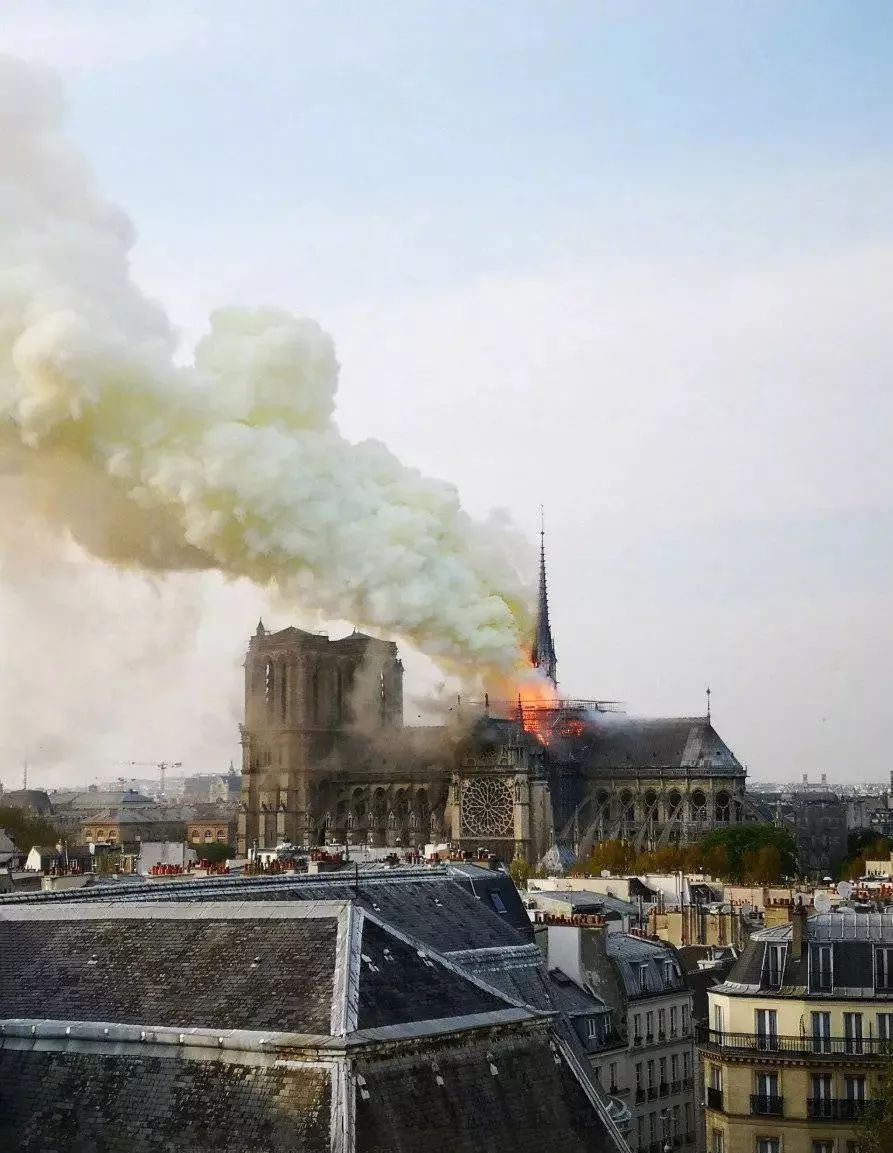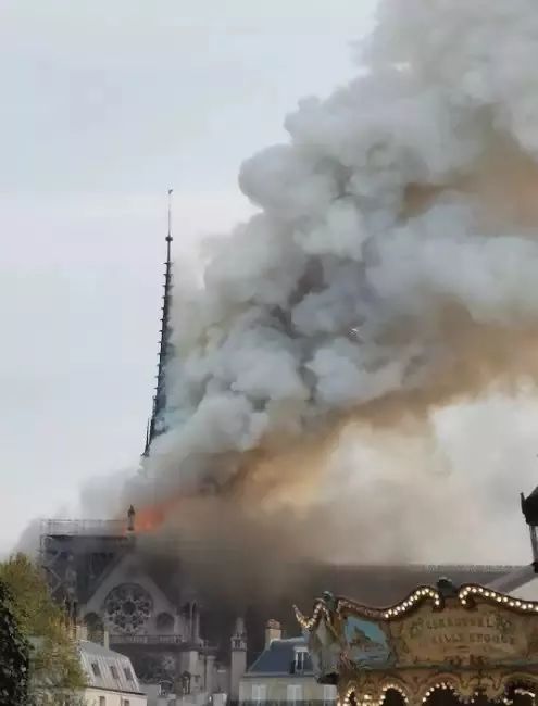 塔尖倒塌 屋顶烧毁 浓烟滚滚