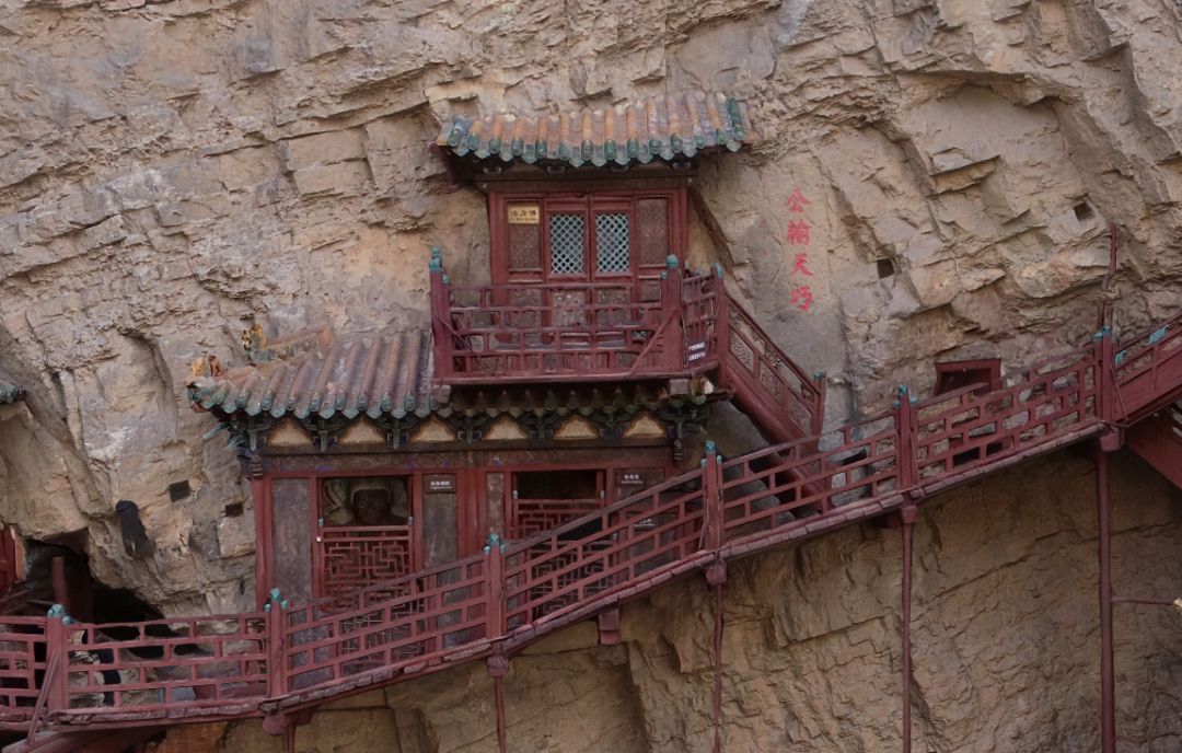 悬空寺位于山西省大同市浑源县恒山金龙峡西侧翠屏峰的峭壁间,以如临深渊的险峻而著称。其原名为“玄空阁”,“玄”取自于中国传统宗教道教教理,“空”则来源于佛教的教理,后因整座寺院就像悬挂在悬崖之上而改名为“悬空寺”。金庸先生称其:“于松不能生,猿不能攀之处,发偌大愿力,凭空建寺”。2010年,悬空寺入选《时代周刊》世界岌岌可危十大建筑。