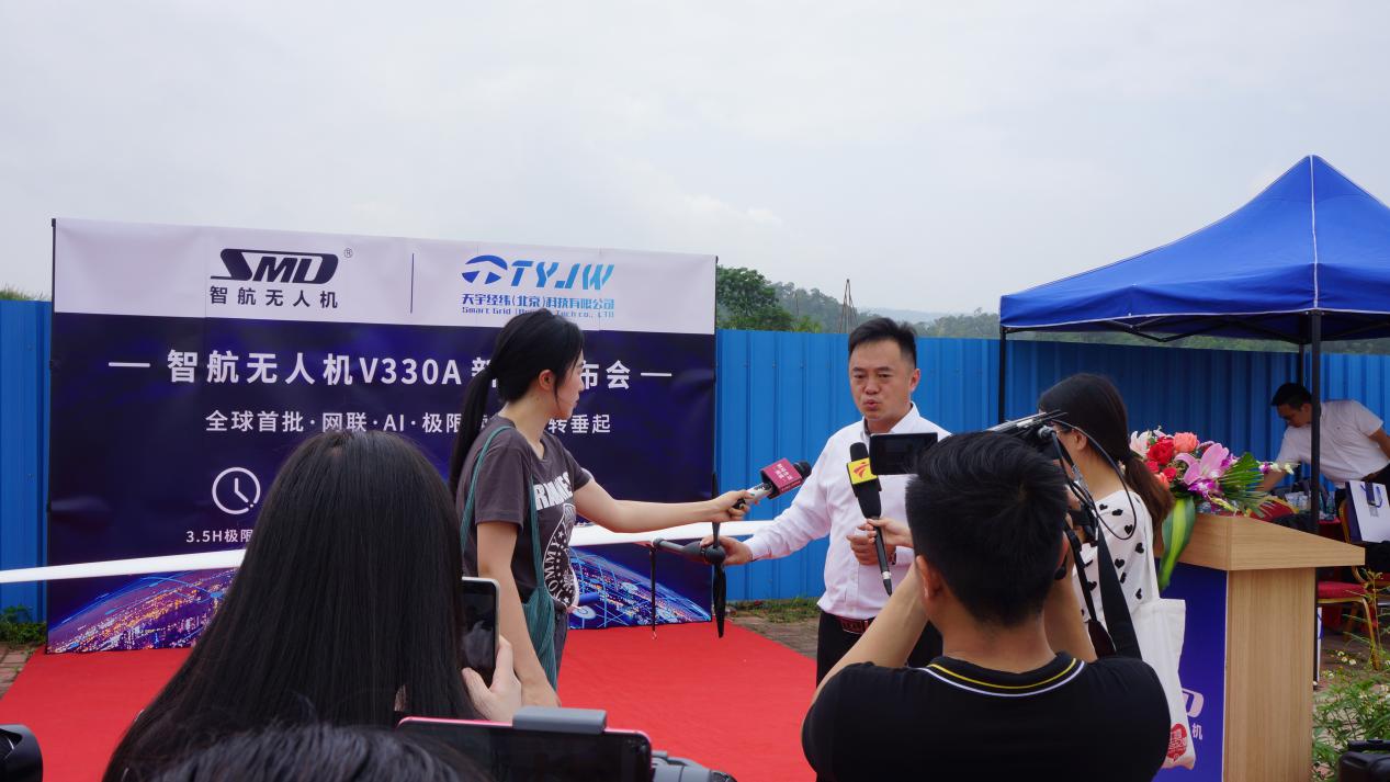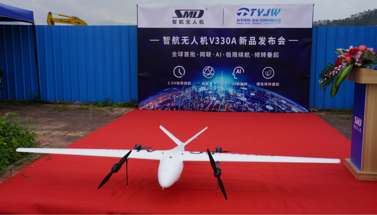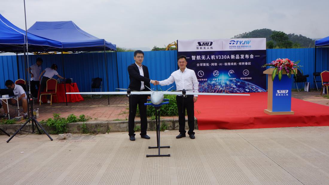 2019年4月29日上午10时30分,中国·大湾区,深圳智航无人机有限公司在广东东莞飞行测试场隆重举办了倾转旋翼固定翼垂直起降无人机新物种V330A的新品发布会。本次发布会由深圳智航为主办单位,邀请了来自深圳无人机协会的领导、5G网联+AI战略合作伙伴天宇经纬代表、众多业内同仁及各界知名媒体朋友共同见证这一意义非凡的时刻。发布会现场进行全球同步高清直播,极大增加了智航品牌影响力及关注度。