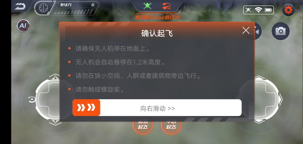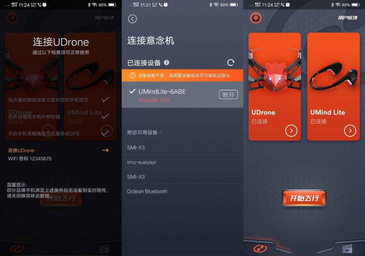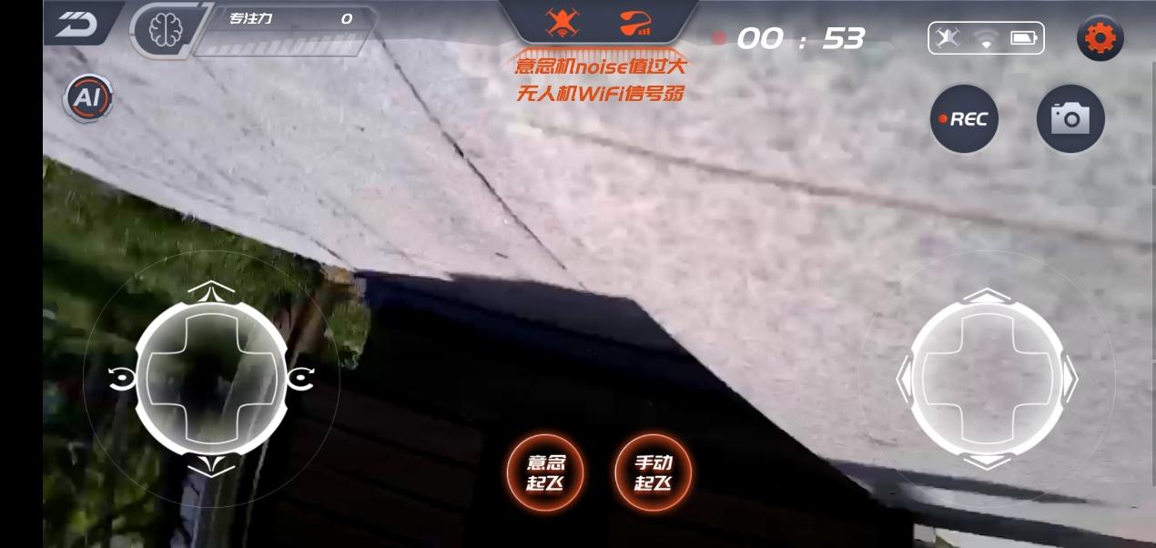 不过只有对应图标显示为绿色状态,才能启用对应的模式,比如红色的UMindLite意念机图标,说明当前的noise值过大,不满足意念控制的基本条件。会不会出现两种起飞模式都无法使用的场景呢?