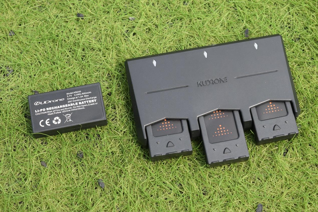 官方有电池套装可选,包含了三块电池和一个充电坞,可以满足三块电池同时充电的需求。在充电性能上,UDrone意念无人机充电完成只需要30分钟,搭配充电坞的三块电池也只需要90分钟左右即可完成供电,那么可以考虑在外出时带上一块移动电源来进行充电。