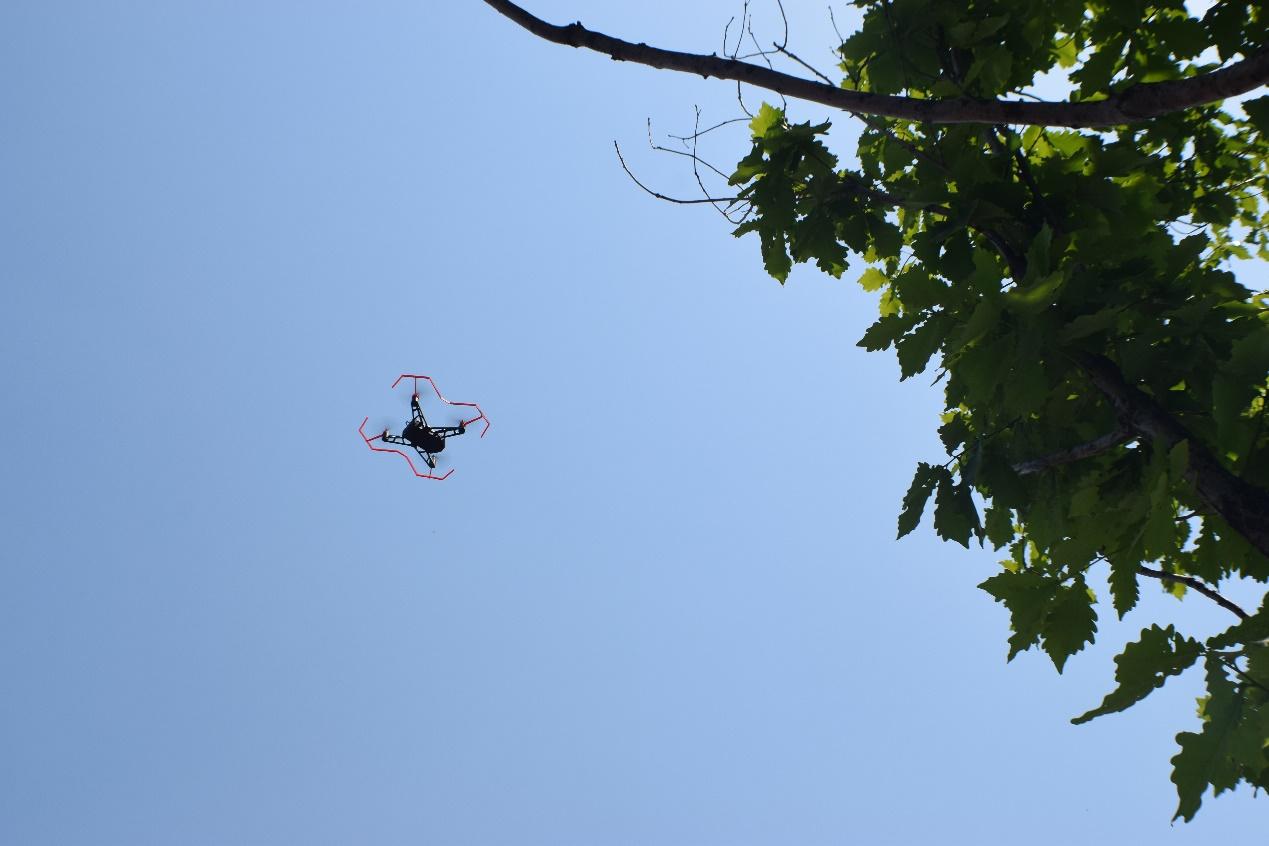 最重要一点是,UDrone无人机基于光流传感技术和气压传感技术,搭配飞控系统来实现稳定的飞行,杜绝一定风力干扰下的随风飘走或是乱飞的问题,下图就是户外有风的情况下所抓拍,机身会有所活动、倾斜,但可以维持悬停状态。