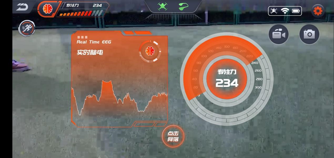 首先是专注力高低影响飞行高度。专注力越高,UDrone无人机飞的越高;专注力分散,UDrone无人机降低,这就意味干扰值变大或是断连后不用担心UDrone无人机仍会高高在上而不可触碰。