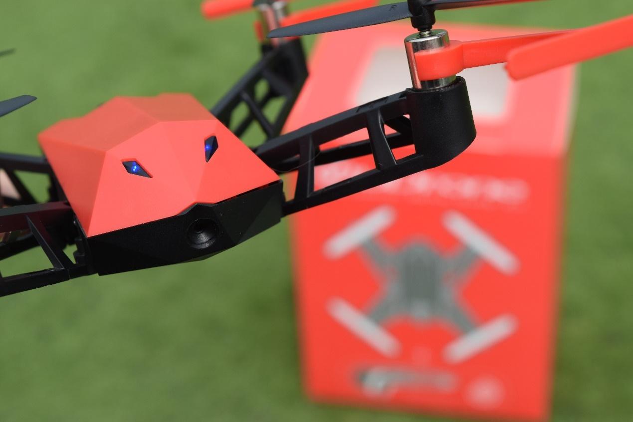 机头左上角设计有一个摄像头,主要作用应该是用来探测高度来实现悬停一类的操作。