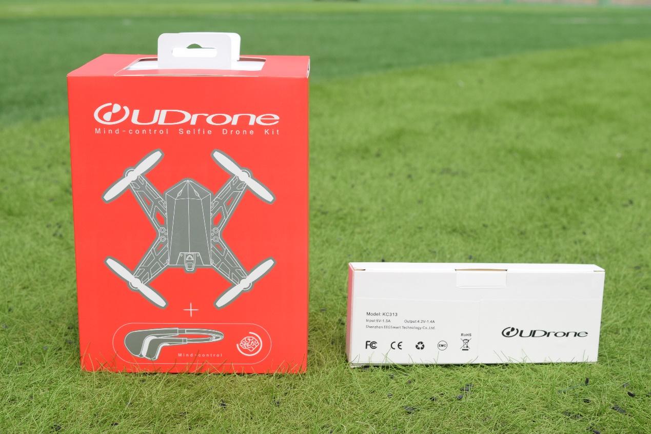 下面来说说这个款UDrone意念无人机套装。既然涉及到意念控制,自然需要有对应的硬件支持,也就是最右侧的UMind Lite意念机。所以这款UDrone意念无人机套装包含了一台UDrone无人机和一台UMind Lite意念机。