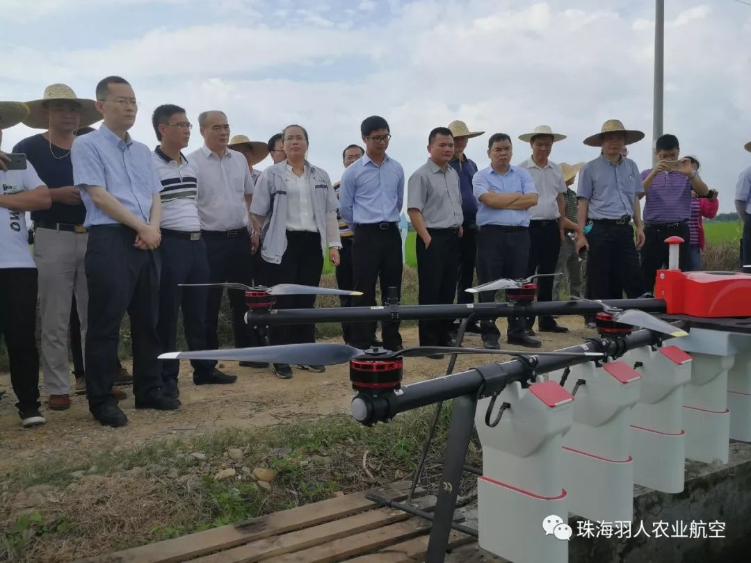 在现场会期间,珠海羽人的农用无人机进行了农作物病虫害统防统治飞防演示。同时,珠海羽人工作人员还向与会人员讲解了用农用无人机农作物病虫害统防统治的飞防使用技术与飞防知识。