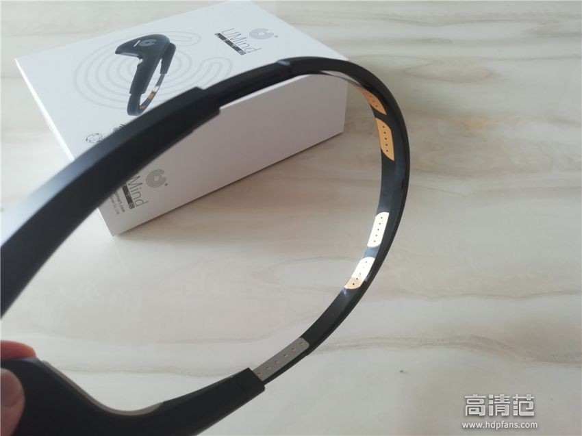 UMind Lite意念控制器主要通过内侧的金属贴片的电极 ,使用时是紧紧贴在额头上来捕捉脑电波的活动。