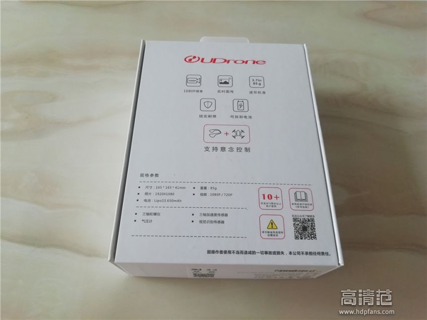UMind Lite意念无人机产品的包装方面还是非常精致有档次,白色彩印上硕大的耳机大图非常抢眼,显著位置介绍了这款产品的主要特点双动圈四喇叭,劲爆低音等,我们在这就不详细说了,底盒有UMind Lite意念无人机产品的详细特点介绍和厂商信息等。