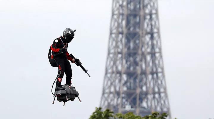 喷气飞行滑板亮相法国国庆阅兵式,“飞人”比“飞行汽车”先到来?