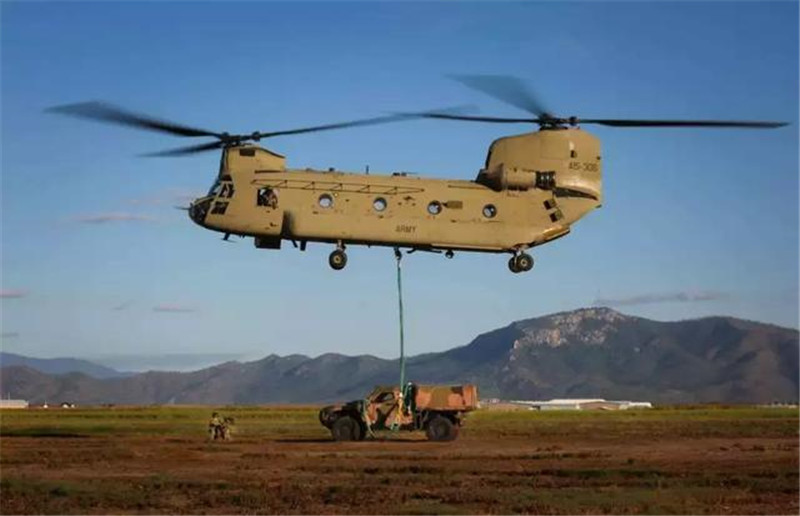 2. 美国纵列双引擎双螺旋桨全天候多功能中/重型运输直升机CH-47。