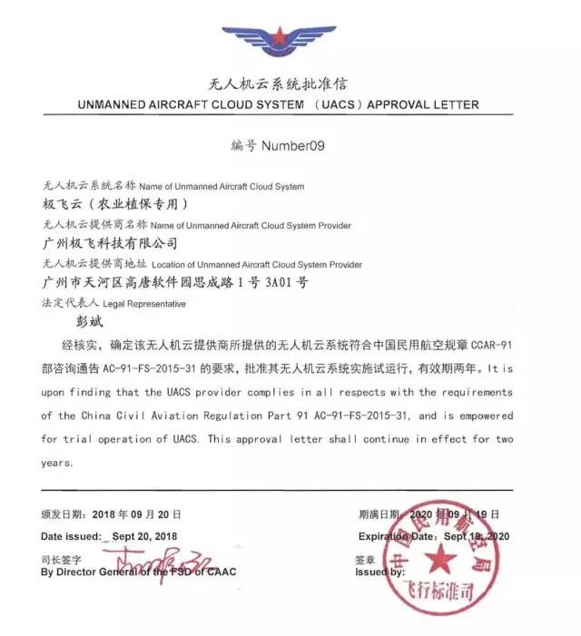 作为智慧农业领域的先行者,在推动无人机数据安全共享与产业规范化发展上,极飞义不容辞。极飞云是国内第一个、目前唯一一个获批的农业植保专用云服务系统,同时也是全国第九家经民航局批准的云服务提供商;我们先后开放数据给北京中斗科技、青岛云世纪信息科技、优云智翔等第三方平台,与各方协同合作,共同建立行之有效的无人机监管体系。