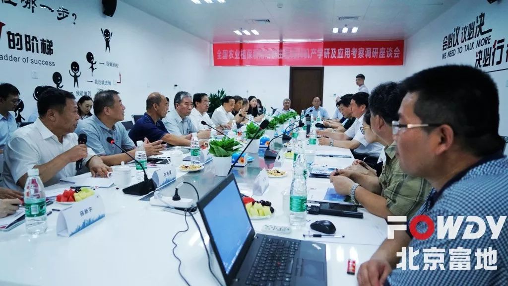 在富地总部,调研组针对农业无人机在产学研及应用发展存在的瓶颈、相关补贴政策、技术培训及服务相关标准、数字化农业基础设施建设、空天地一体化信息平台建设等核心问题,与大家展开了深入的交流。