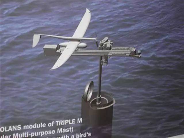 该系统采用德军正在使用的“阿拉丁”手持发射无人机,将发射系统安装在潜艇升降桅杆的顶端密封耐压器中,容器最多可以携带3架无人机,潜艇在潜望镜深度伸出桅杆使用弹射方式自动发射无人机,并通过通讯桅杆顶端的天线实时接收无人机在飞行过程中侦察到的图像。
