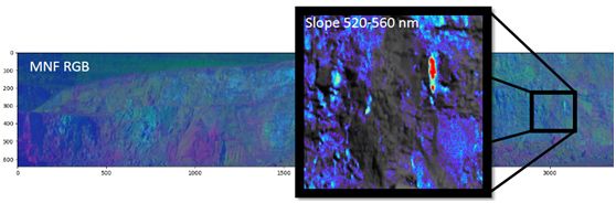 将高光谱成像应用到矿业可以减少作业的不确定性。可以使得作业者更清楚的看清矿物分布。同时利用相对低的成本对黏土矿进行识别。
