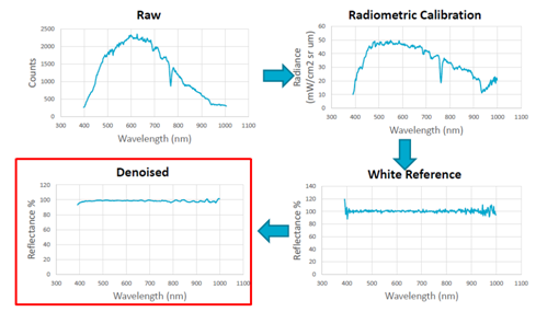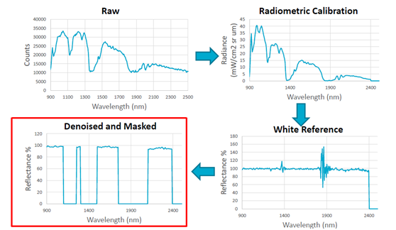 原始数据 → 辐射亮度转换 → 反射率转换 → 去噪声