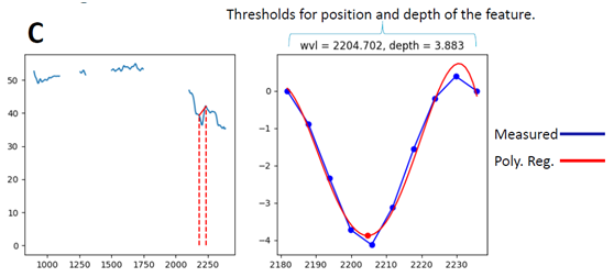 高光谱数据在矿业中的应用需要光谱库来帮助实现。光谱库中所存储的数据是利用光谱仪通过不同分析技术(XRD,XRF,QEMSCAN,electronic与光学显微镜等等)得到的不同矿物质的光谱特征。在实际应用过程中,利用机器学习技术(支持向量机,随机森林与光谱角制图等等)将得到的矿物质数据做聚类,然后参考数据库,比对得到不同的簇属于什么矿物质。
