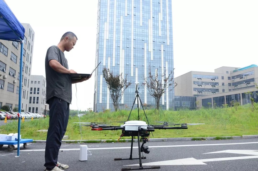 挂载CPE准备进行5G高清视频回传测试的无人机