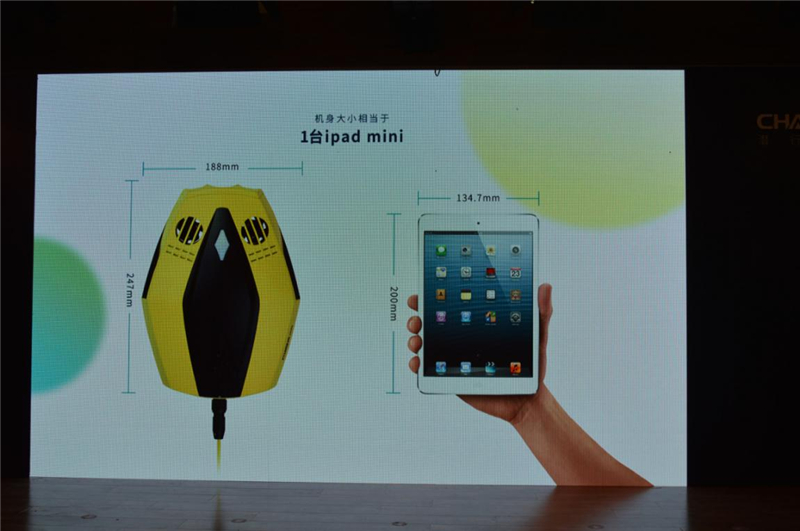 “潜行多睿”机身大小相当于一台Ipad mini,机身配备一个1080p全高清镜头,每次充电后的使用时间是一小时,可到达的深度是15m,此外,还配备2盏250流明LED灯。