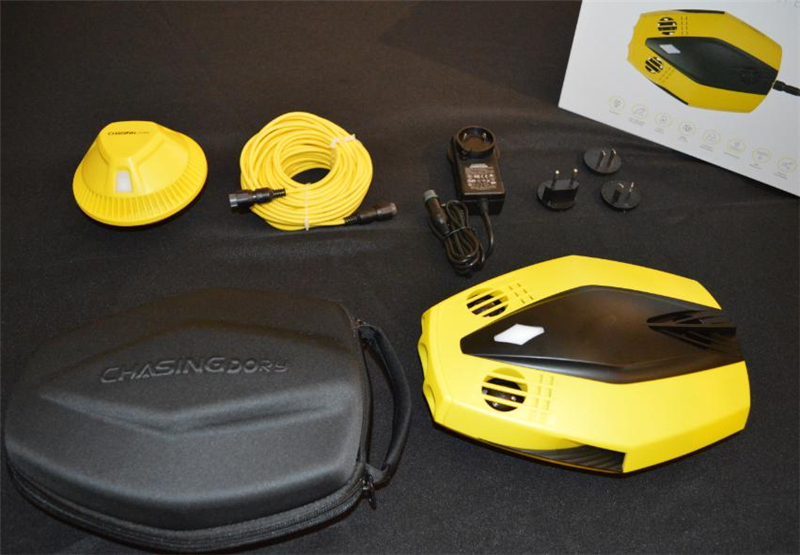 “潜行多睿”是一款有缆水下无人机,打开外包装,除了潜航器主机、浮标、15米线缆、电源适配器、收纳包、说明书、保修卡、快速使用指南、取线钩之外,还配备了四种转接头(美,英,澳,欧),解决世界各地用户的的充电刚需。