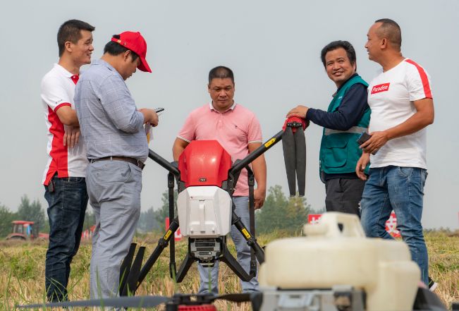 2019年9月26日,极飞科技联合湖北省农业机械化技术推广总站、湖北省油菜办公室组织了油菜轮作的现场观摩培训,并在仙桃市剅河镇余脑村进行了无人机飞播油菜作业演示。湖北省农业农村厅党组成员肖长惜、省农机推广总站站长任耀武、省油菜办副主任鲁明星及相关专家、代表等一行莅临现场指导,并对极飞精准的播撒技术、均匀的播撒效果在改进农业生产、实现生态保护等方面发挥的作用表示了充分的肯定。