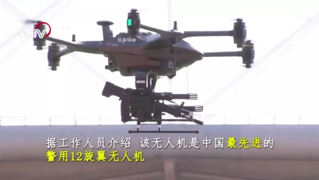 近日在关于长春某特警支队的报道中,出现了一款警用十二旋翼察打一体无人机。该无人机可携带自动步枪,对“暴恐分子”精确射杀。据现场工作人员介绍,该无人机是中国最先进的警用12旋翼无人机(哈瓦战斧H-16特种装备无人机)。