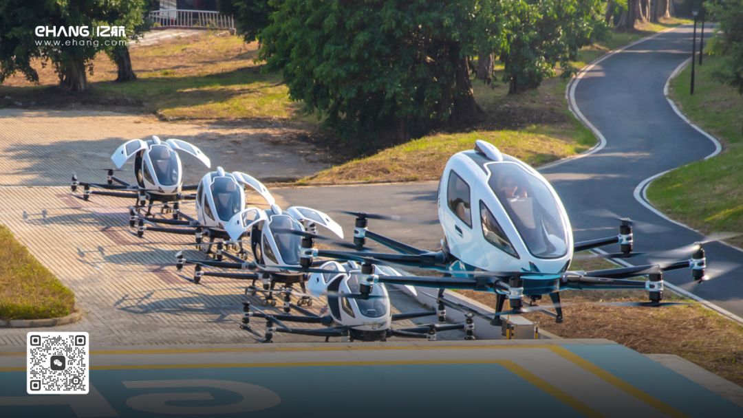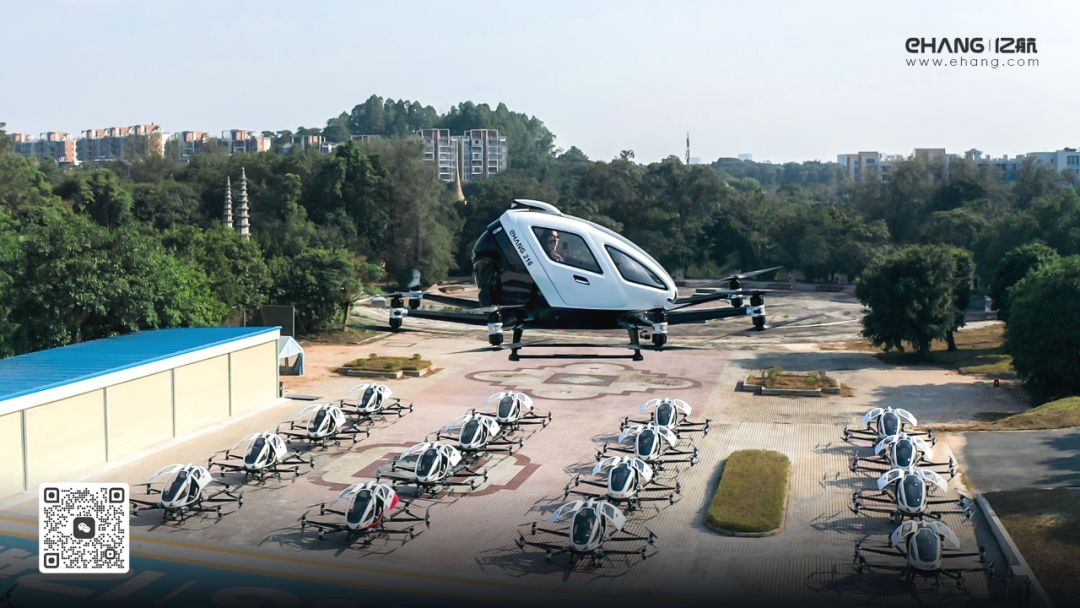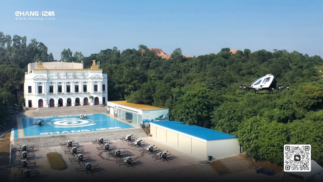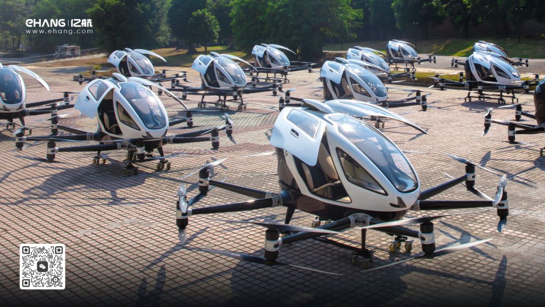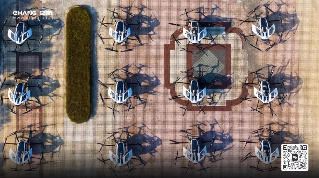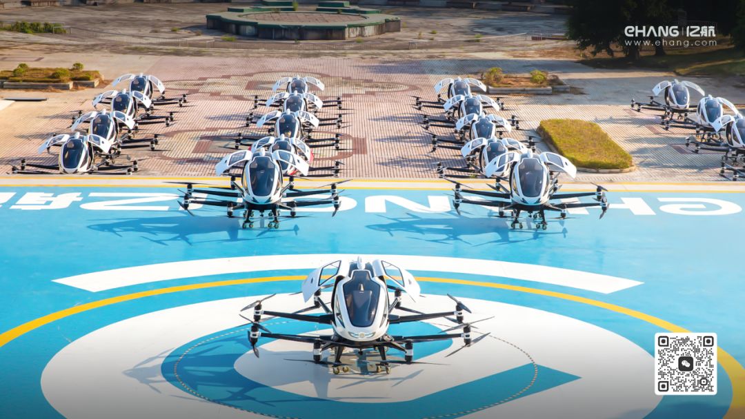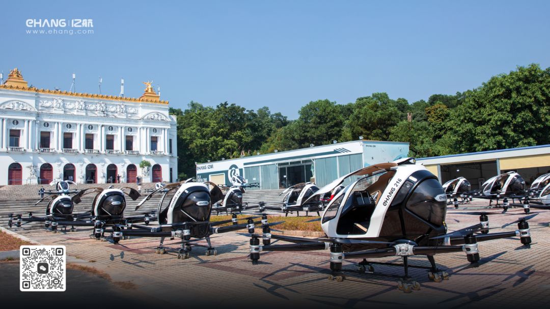 亿航216自动驾驶飞行器方阵列队完毕,请检阅