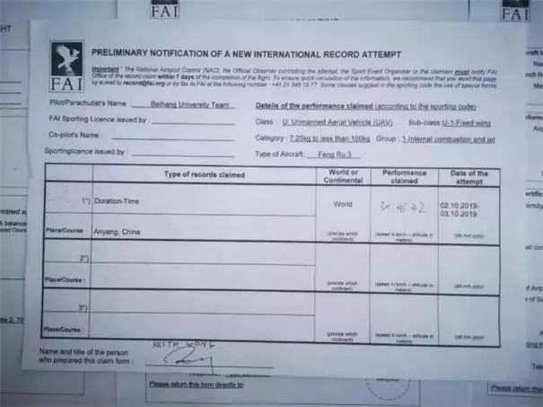 国际航联观察员现场确认飞行时间及飞行活动的有效性