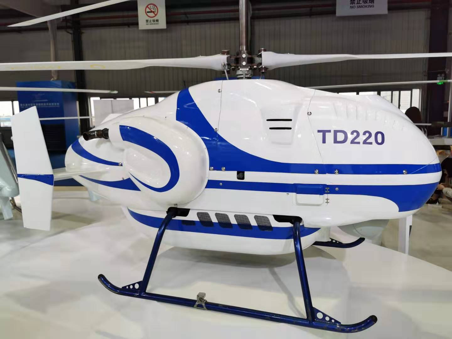 TD220无人直升机采用电控共轴技术,模块化设计,结构紧凑,全自主,高精度控制,搭载自主研发的HeliAP飞行控制系统,实现了飞机从起飞、悬停、航路点飞行到降落等所有飞行状态的全自主化,并具有链路失效保护和自动返航功能。操纵系统采用电控分工共轴操纵系统,传动系统采用共轴反桨传动和同步带减速输入端,在发动机动力输出端配置了橡胶联轴器和惯性离合器,在隔离发动机振动的同时,具有结构紧凑、悬停效率高、无尾桨失效风险等特点。