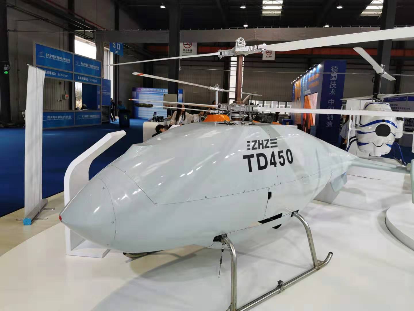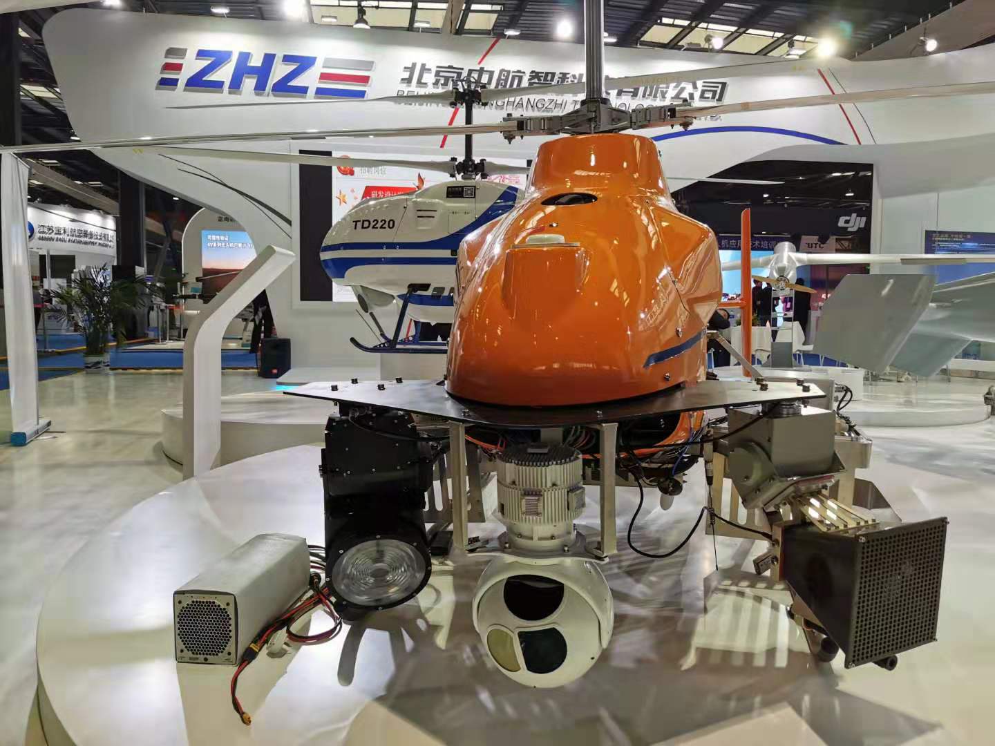 TD5无人直升机是中航智针对城市消防、森林消防和应急救援等方面所研发的产品,该款产品同样是沿用了公司经典共轴双桨的机构设计。这样的机型设计赋予了无人机具备小体积、灵活、高速以及抗风强等特点。据了解,TD5无人直升机最大负载100kg,使得该机赋予强大的“使命”。展会上我们可以看到,这款飞机搭载了各种的负载不少于5种。