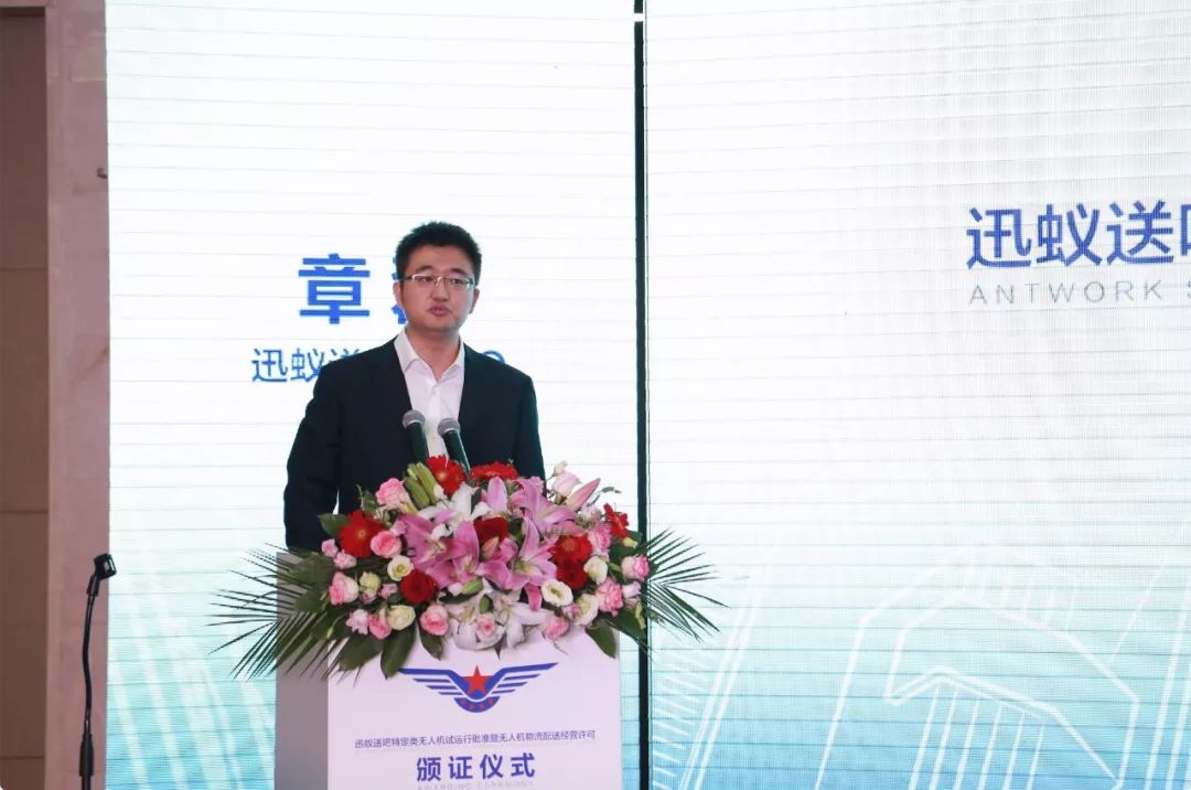 迅蚁送吧CEO章磊在颁证仪式上感谢了中国民航局、华东地区管理局、浙江安监局以及杭州本地各级政府长期以来给予公司的信任和支持。并表示本次试运行批准函的颁布对公司来说是一个意义重大的里程碑,也是一个全新的起点。