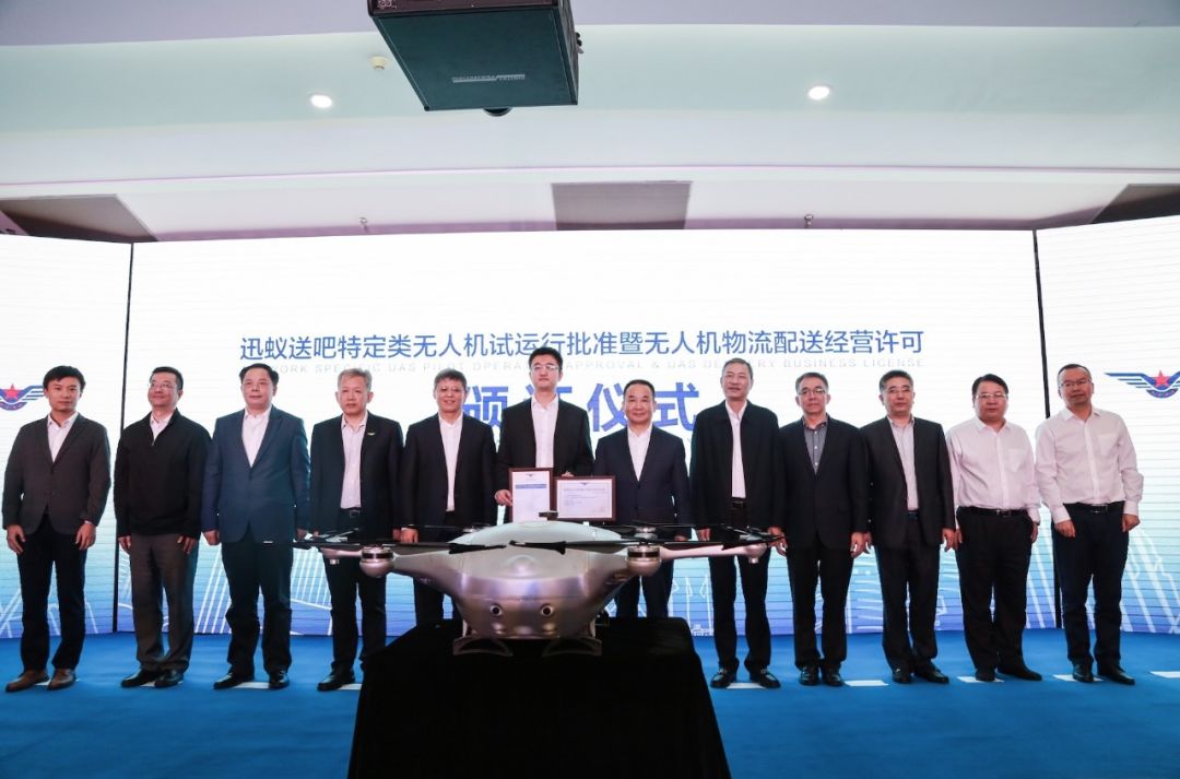 迅蚁送吧获民航局颁发全球首张城市物流无人机试运行“牌照”