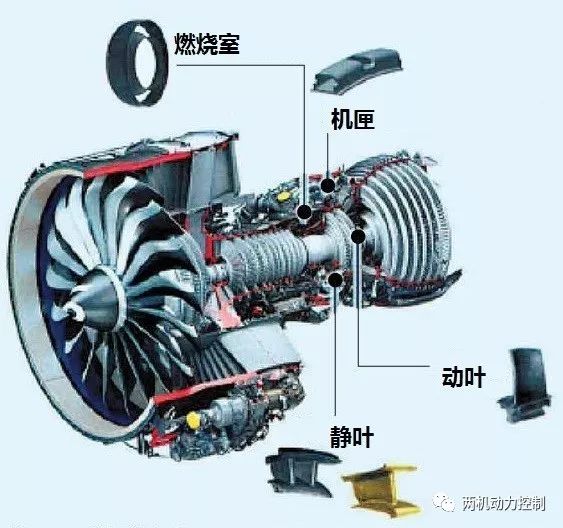 图1 钛铝合金高压压气机叶片和低压涡轮叶片在航空发动机上的应用