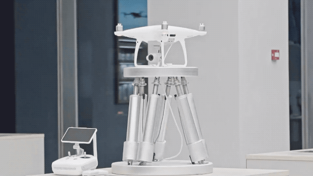 店铺首层中心位置,搭建了全新的云台稳定展示系统,模拟无人机在空中飞行的姿态,帮助消费者直观地感受三轴云台在多角度运动下的稳定姿态。