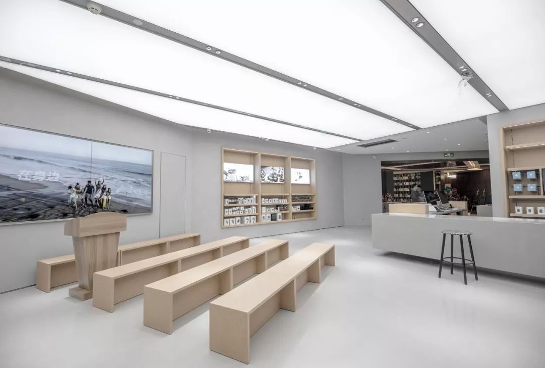 设计考究杭州旗舰店坐落在杭州钱江新城 CBD 平安金融中心,店铺共两层,面积超 400 平方米。店面整体设计渲染出干净、素雅的空间氛围,既向自然致意,也与杭州这座充满人文景观的城市紧密交汇融合。