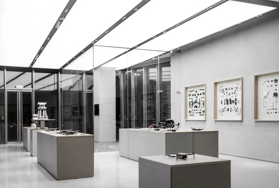 杭州旗舰店是大疆首家以“科技博物馆”为设计概念的旗舰店,室内设计科技感十足,如无人机自动飞行演示、云台稳定演示、无人机拆解图、大疆飞行模拟等科技演示区,让人近距离感受科技的魅力。杭州旗舰店首次引入智能飞行装置,店铺首层还特辟一侧,搭建了科技感十足的无人机自动飞行演示区。无人机在无飞手操控状态下自动执行起降、飞行、环绕、拍摄等动作。