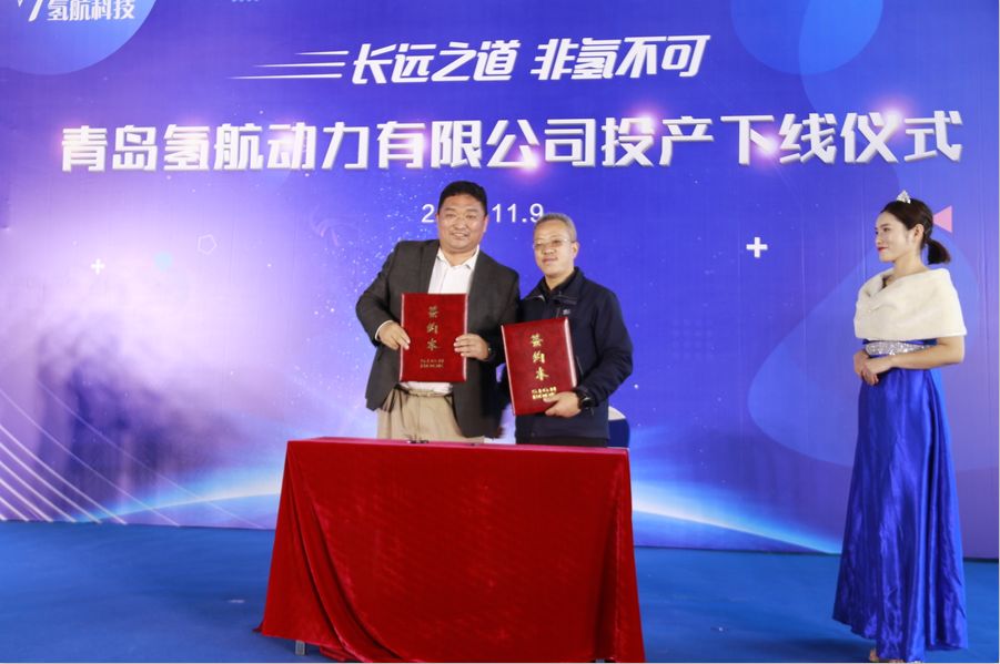 11月9日,青岛氢航动力有限公司氢能源无人机投产下线仪式在青岛同和高新区隆重举行。中国信息协会通航分会副会长、北航校友通航协会驻会副会长兼无人机专委会总干事程泊霖,北航校友会副会长李洪军,浙江氢航科技有限公司董事长刘海力;平度市委书记谢兆村,市委常委、副市长毛军响,市发改、城建、交通运输、自然资源、生态环境、工信、应急管理、农业农村、供电、投资促进,以及南部新区办、金融事业产业部、航空航天事业部、新兴产业事业部等相关市直部门、单位负责人,同和街道党工委书记、青岛华侨科技园管委会主任夏英平,同和街道党工委副书记、办事处主任尹海霞,青岛华侨科技园土地规划建设局局长冯俊杰等出席仪式并座谈,同和街道、青岛华侨科技园部分干部及青岛氢航动力有限公司部分员工参加投产下线仪式。