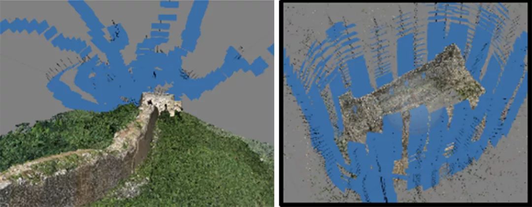 图4 五航线获得更高精度数据 图5 最高密度敌楼环绕拍摄.