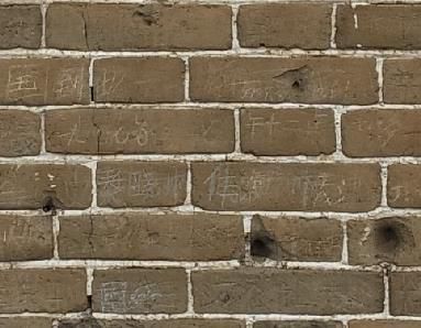 图6 敌楼墙体上遗留的弹孔和游客刻划