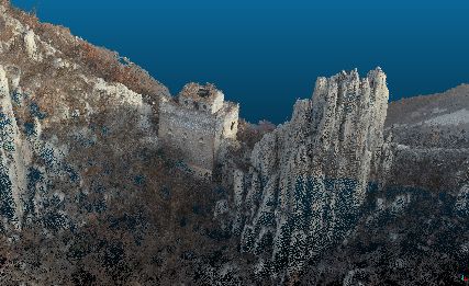 图17 低空摄影测量生成的明长城某峭壁旁敌楼三维点云
