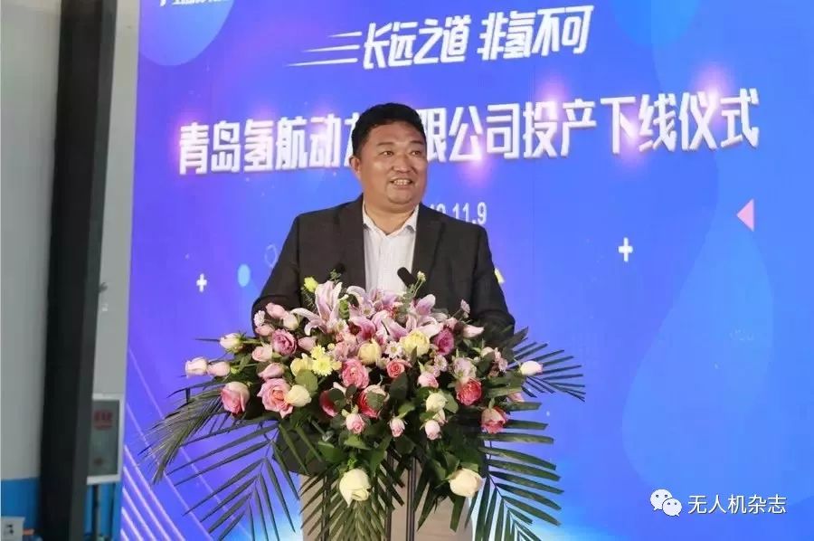 11月9日,青岛氢航动力有限公司(下称青岛氢航)氢动力无人机投产下线仪式在青岛同和高新区隆重举行。浙江氢航科技有限公司(下称氢航科技)董事长刘海力,平度市委书记谢兆村,市委常委、副市长毛军响,中国信息协会通航分会副会长、北航校友通航协会驻会副会长兼无人机专委会总干事程泊霖,北航青岛研究院院长冯文全,北航青岛校友会秘书长李林等领导嘉宾参加投产下线仪式。