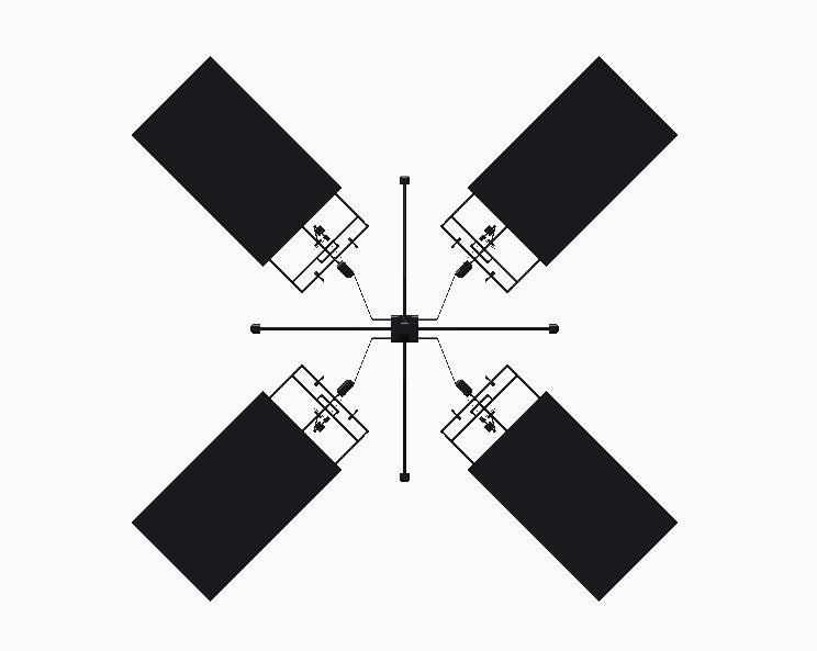 作品样机设计为X型四轴滚翼结构,采用电动力驱动,装备了锂聚合物电池和无刷外转子电机,使用飞控系统实现控制稳定,具备良好的垂直起降与前飞能力。