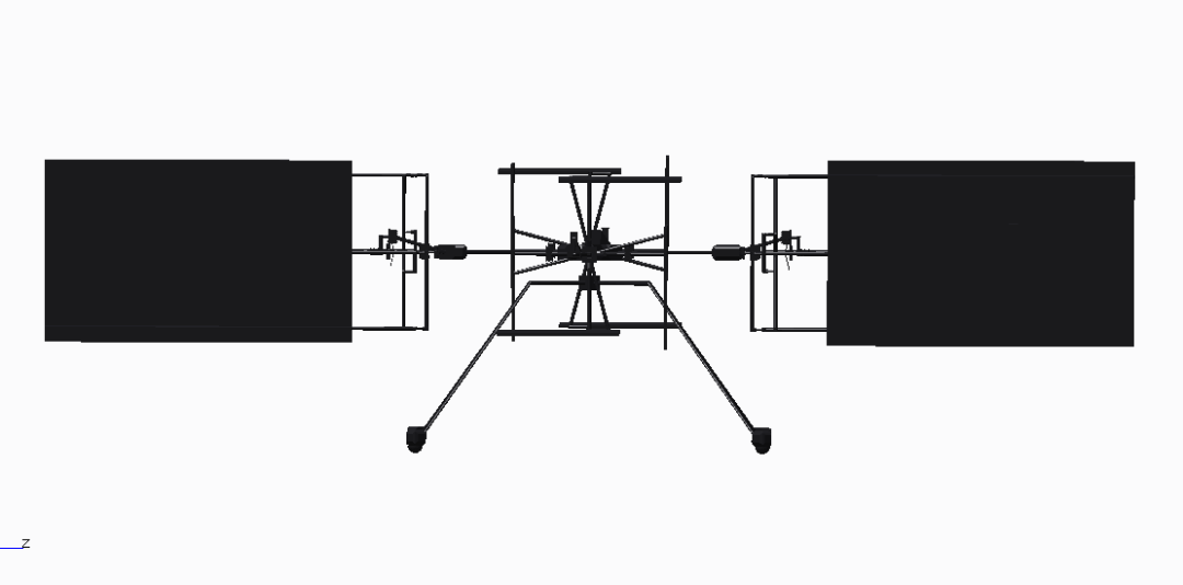 1.设计创新。采用四轴滚翼结构,与二轴滚翼配合一轴旋翼的组合结构相比,机动性更好,应用前景更广阔。此设计目前正在申请发明专利。