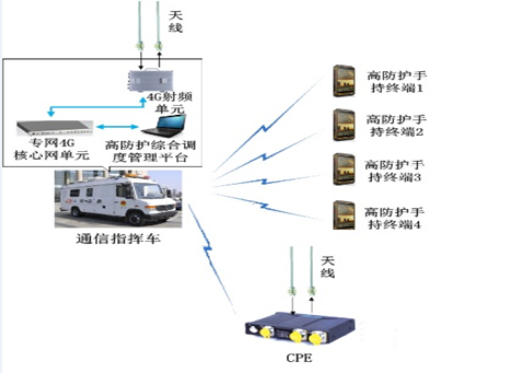 慧明捷本次活动展示的LTE无线通信系统设备包含LTE基站、调度管理平台、手持终端、CPE;LTE基站通常安装在通信车上,手持终端在LTE信号覆盖范围内能够直接与通信车进行双向语音、双向图像、双向数据的传输,并通过调度管理平台进行管理与调度,同时整个系统也能够允许CPE的接入,实现无线传输距离的延伸。