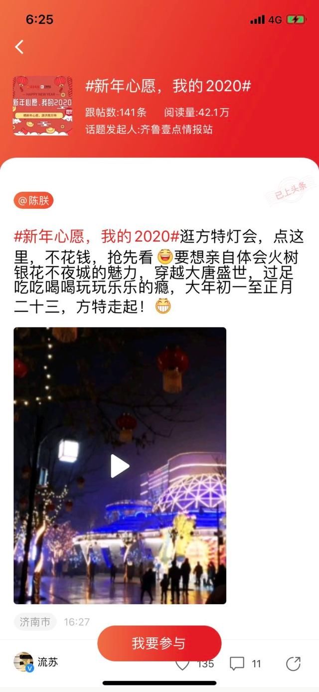 转载 2020-01-13 23:00 齐鲁壹点 来源:齐鲁壹点寒假来临,年关将至!齐鲁晚报·齐鲁壹点联合济南方特东方神画特别推出“新年心愿,我的2020!”——线上线下互动活动,全省各地壹粉在情报站纷纷晒出您在2020年的新年愿望和新年照片,参与情报站#你好,2020#话题互动。